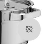 Intelligens és kompakt: egy modern konyhában a korlátozott tárolóhely legjobb felhasználása gyakran fontos tényező. A WMF Compact Cuisine edények a kiváló tulajdonságok és az elegáns formatervezés egyedi kombinációját kínálják, és az egymásba rakhatóság funkcióval helyet takarítanak meg a legkisebb konyhákban is. Az edények Cromargan® rozsdamentes acélból készültek, mosogatógépben moshatók. Az üreges fogantyúk csökkentik a hőátadást, így bármikor megérinthetők. Az edényen belüli skála leegyszerűsíti a mérést, és az öntőél biztosítja a pontos öntést csepegtetés nélkül. Az univerzális TransTherm® alj egyenletesen eloszlatja a hőt és hosszú ideig megtartja az energiatakarékos főzés érdekében - bármilyen típusú főzőlapon használható, beleértve az indukciósat is.