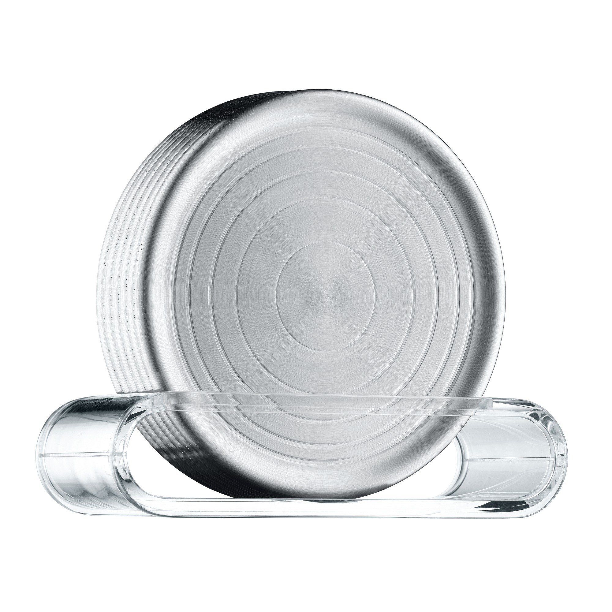 A készlet darabjai az állványban jól illeszkednek, így biztonságosan és egyszerűen szállíthatók. Az ovális alaknak köszönhetően helyet takarít meg az asztalon. Az állvány alján található filc megakadályozza az asztal megkarcolását.